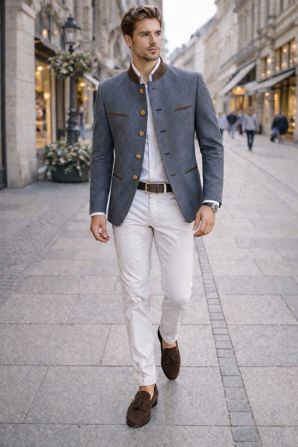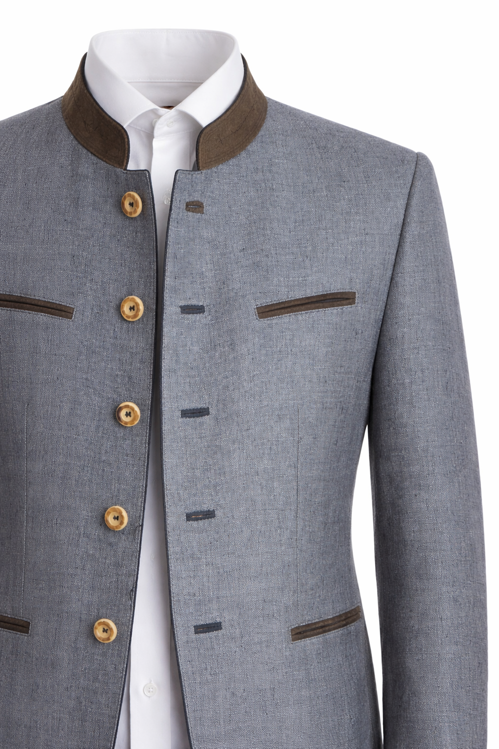 Wunderschönes Trachtensakko mit herrlich weichem Kragen aus feinstem Leder. Die handverstürtzten Knopflöcher zeugen von höchster Handwerkskunst, abgerundet von edlen Hirschbeinknöpfen. Wunderschön zu eleganten Hosen, wenns einmal feierlich sein soll aber auch toll zu Lederhos´n. Passende Gilets runden diesen Traum perfekt ab.