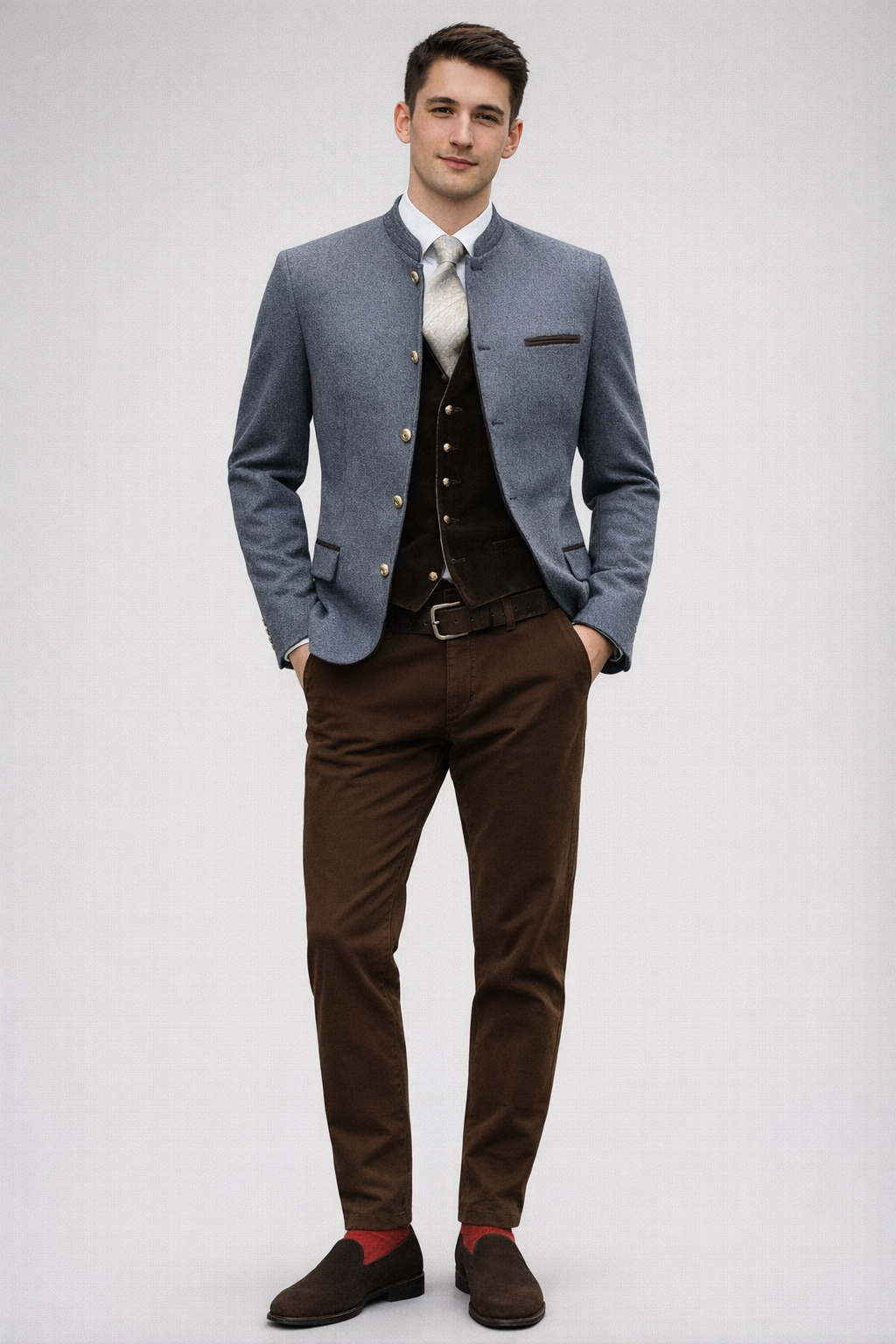 Für dieses edle Trachtensakko beziehen wir den Loden aus der ältesten Tuchfabrik in Deutschland. Für unser Designteam derzeit die beste Qualität, die man verarbeiten kann. Extrem angenehm zu Tragen ist diese wunderschöne Kombination aus Grau mit Kastanienbraun und eignet sich sowohl zur eleganten Hose als auch zur Lederhose.